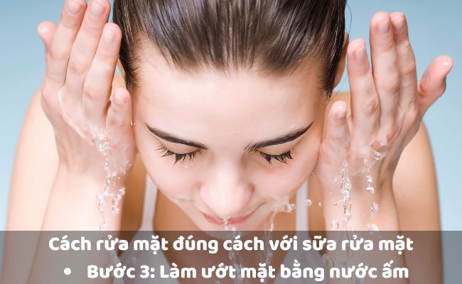 Bước tiếp theo trong cách rửa mặt đúng cách là sử dụng nước ấm để làm ướt mặt. Nước ấm không chỉ giúp làm sạch bụi bẩn sâu trong lỗ chân lông một cách dễ dàng, mà không gây ảnh hưởng đến lớp dầu tự nhiên. Theo các chuyên gia da liễu, bạn tuyệt đối không được rửa mặt bằng nước quá nóng hoặc quá lạnh vì điều này có thể ảnh hưởng đến lớp dầu tự nhiên trên da, gây mất nước, mất độ ẩm, khiến làn da bị khô ráp, kích ứng.