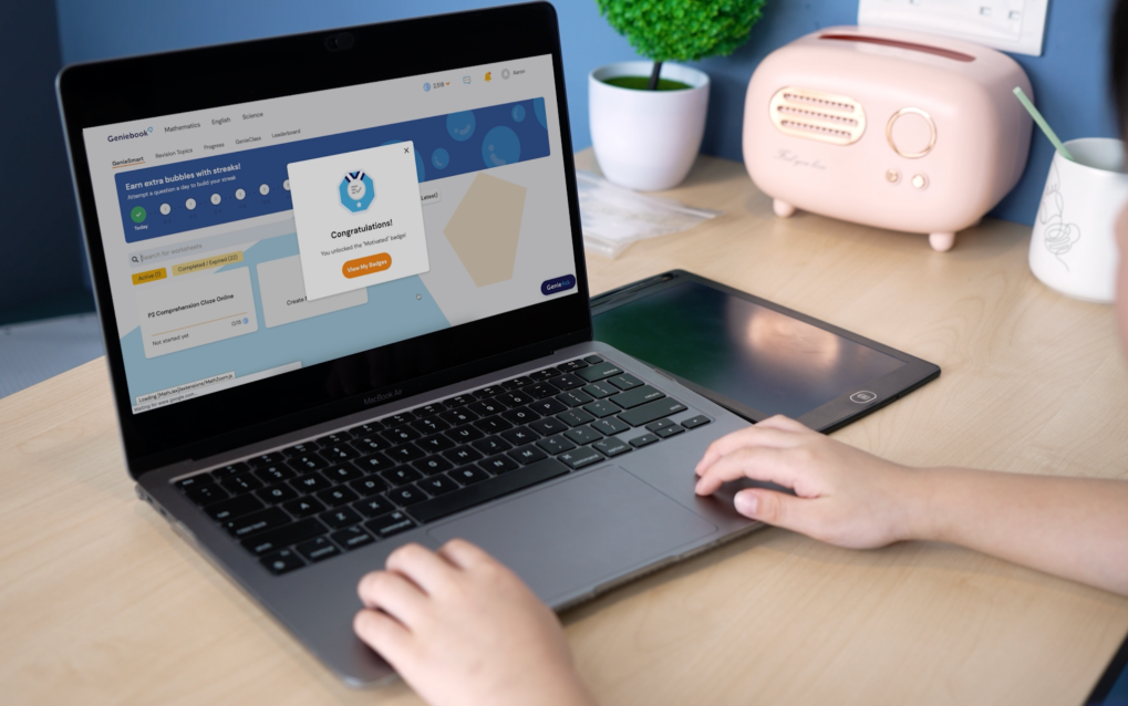 Ngoài ra, để duy trì sự hứng thú và tạo động lực cho học sinh, Geniebook tích hợp hệ thống tích điểm đổi quà không giới hạn – Bubble Store. Qua đó, trẻ có thể làm quen với việc đặt mục tiêu, chủ động học và không ngừng nỗ lực hoàn thành những điều đã đề ra.