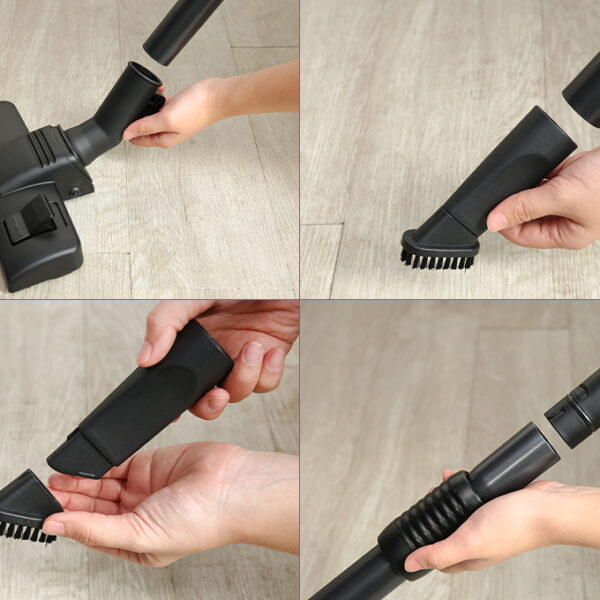 Với đầu hút khe, đầu hút sàn và bàn chải quét bụi, máy hút bụi Samsung VC18M2120SB/SV sẽ làm sạch được nhiều vị trí trong nhà như mặt sàn, thảm, khe cửa, khe tủ, bàn phím máy tính, gối, nệm,…