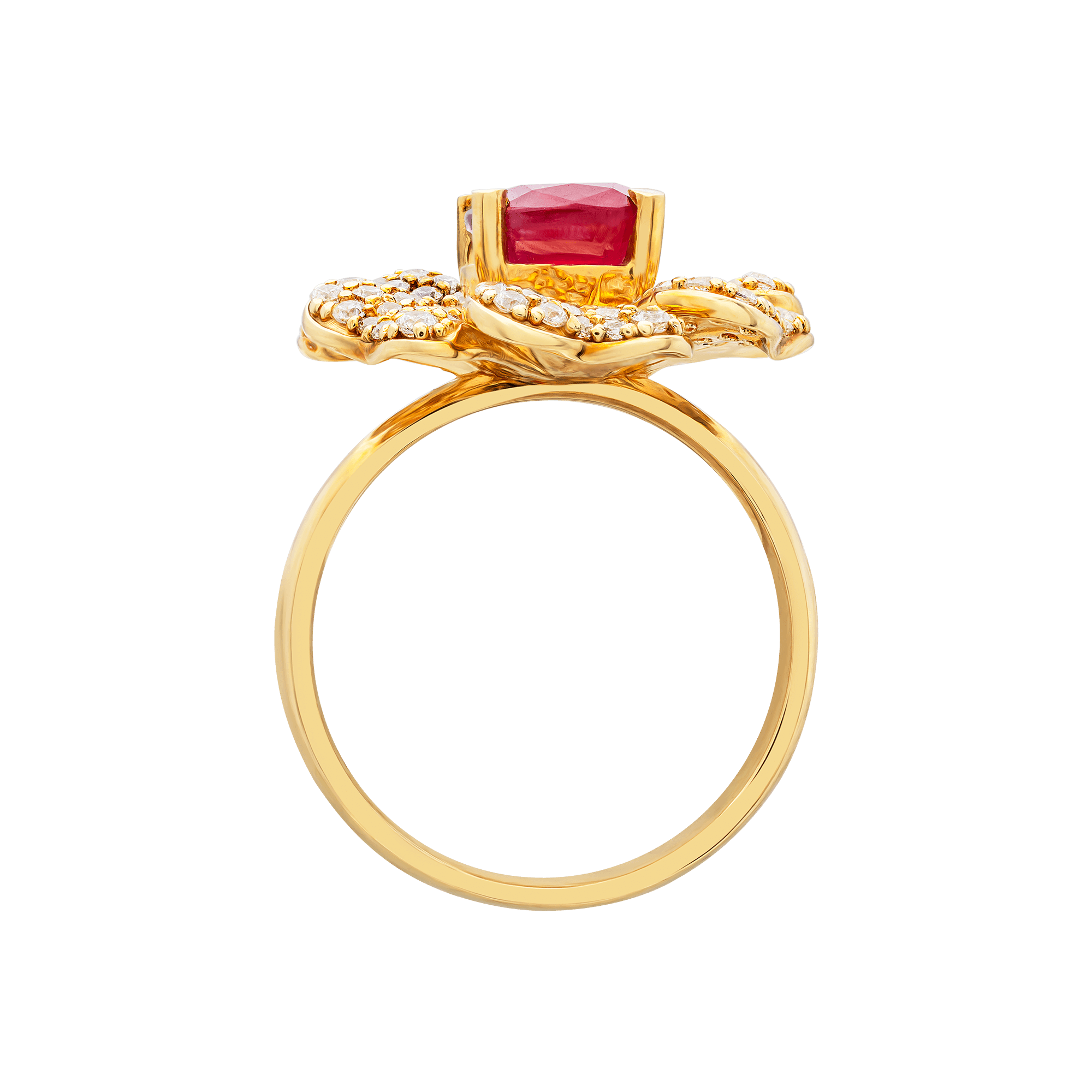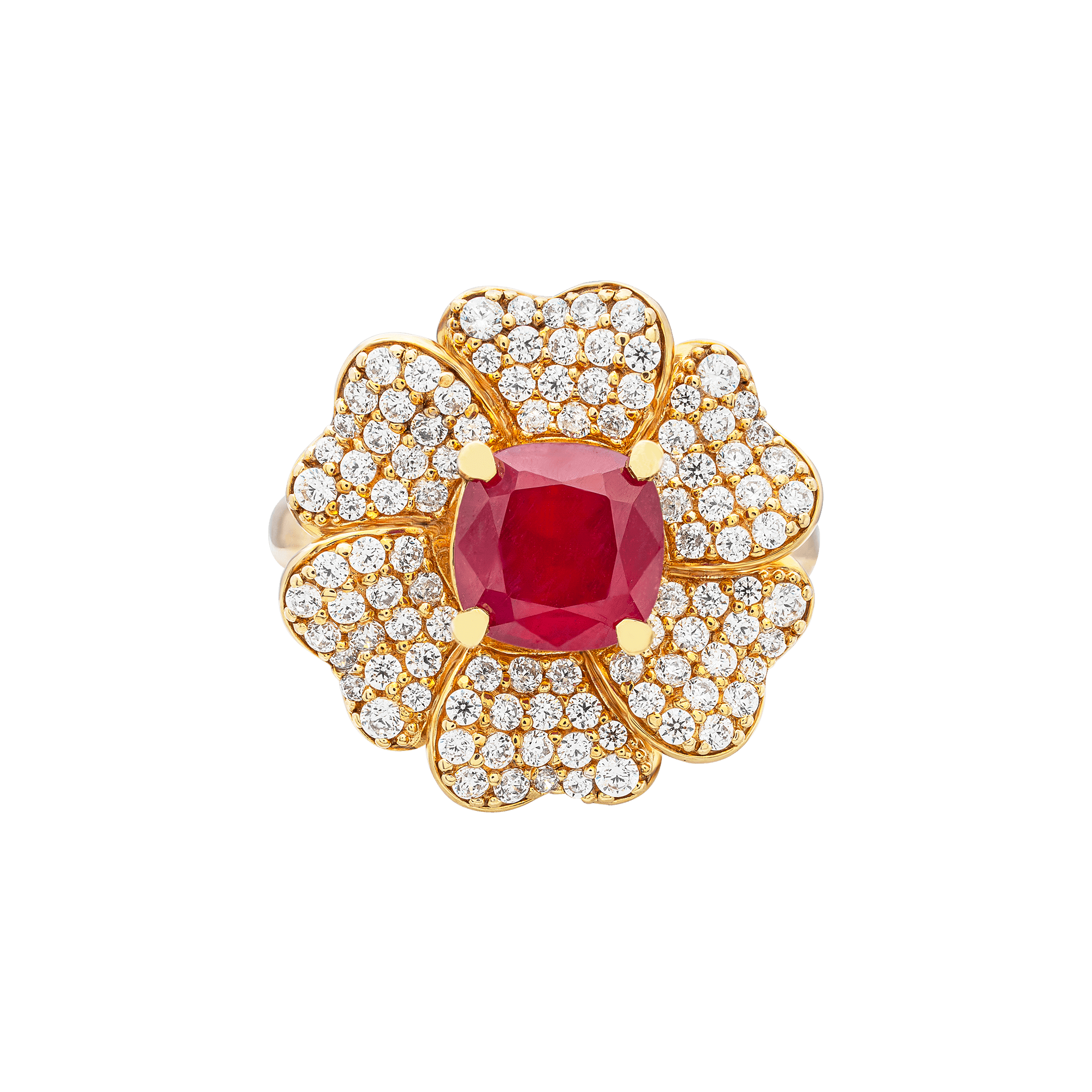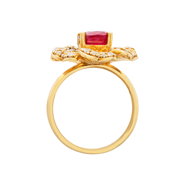 Được chế tác từ vàng 18K cùng vẻ đẹp huyền bí của viên đá Ruby, mang đến sản phẩm nhẫn sang trọng và quyến rũ dành cho phái nữ. Đá Ruby sở hữu vẻ quyến rũ, khi được cộng hưởng ánh sắc của dãy đá trắng lấp lánh, hài hòa theo từng đường nét thiết kế đã tạo nên một món trang sức đẹp mê hồn.
